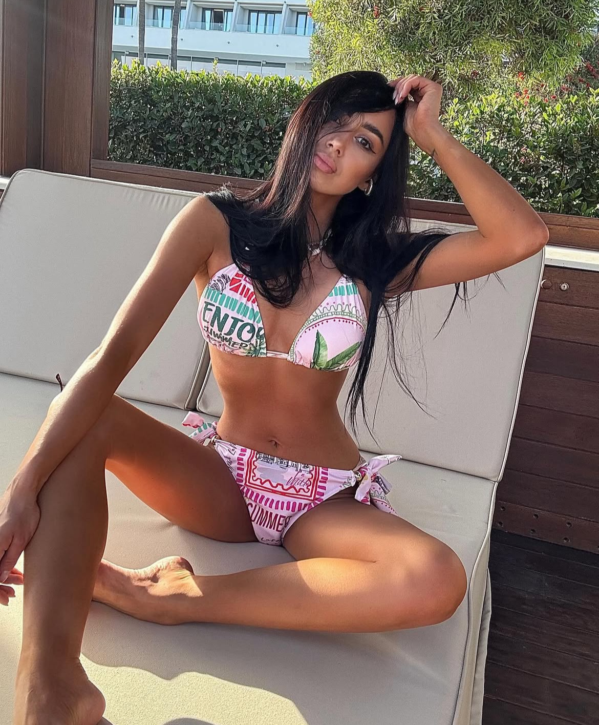 Със своя цветен принт, вдъхновен от тропическите острови, този модел съчетава стил, комфорт и ефектно излъчване. Горнището е с класическа триъгълна форма, а долнището се регулира с връзки, за идеално прилягане към тялото.